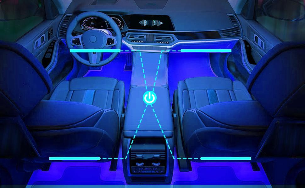 - The car led strip lights interior can be controlled by 3 approaches: A. Remote controller, B. Android or iPhone “Ehome Light” App, C. Simple controller. This car lights interior that you can distance controll it by remote controller.